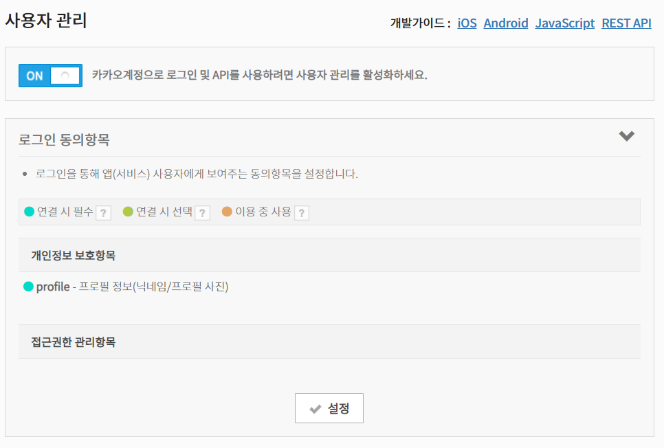 | onSuccess | UserProfile | 사용자 정보 요청이 성공한 경우로 사용자 정보 객체를 받습니다. |