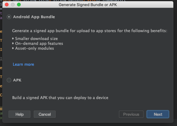 2. 여기서 aab의 형태로 추출할지, apk의 형태로 추출할지를 설정합니다.