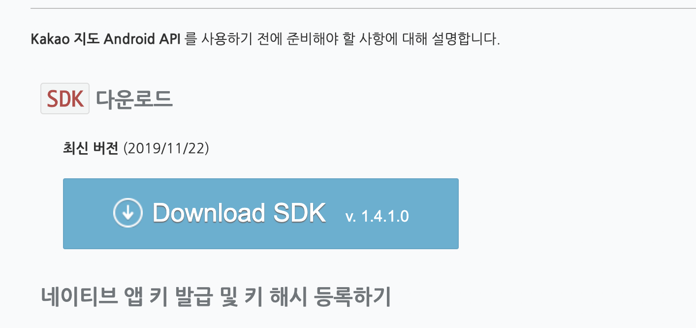 카카오 지도 API를 연동하기 위해서 SDK를 다운로드 받고, 앱 키를 발급받아야합니다.