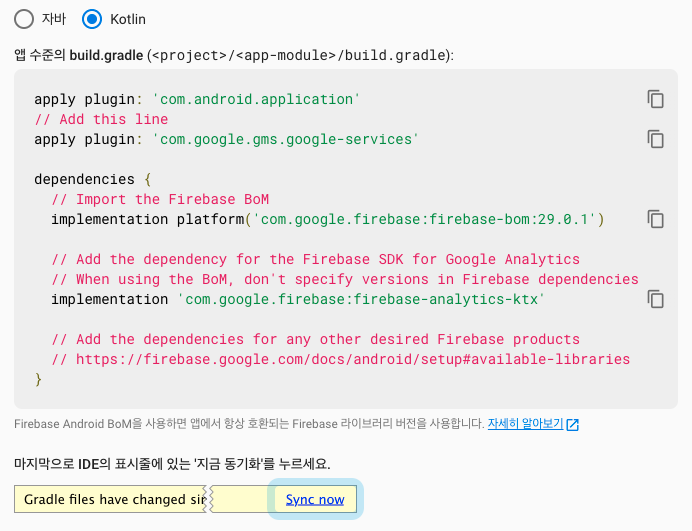 저는 코틀린을 사용하기 때문에 코틀린 버전으로 보겠습니다.