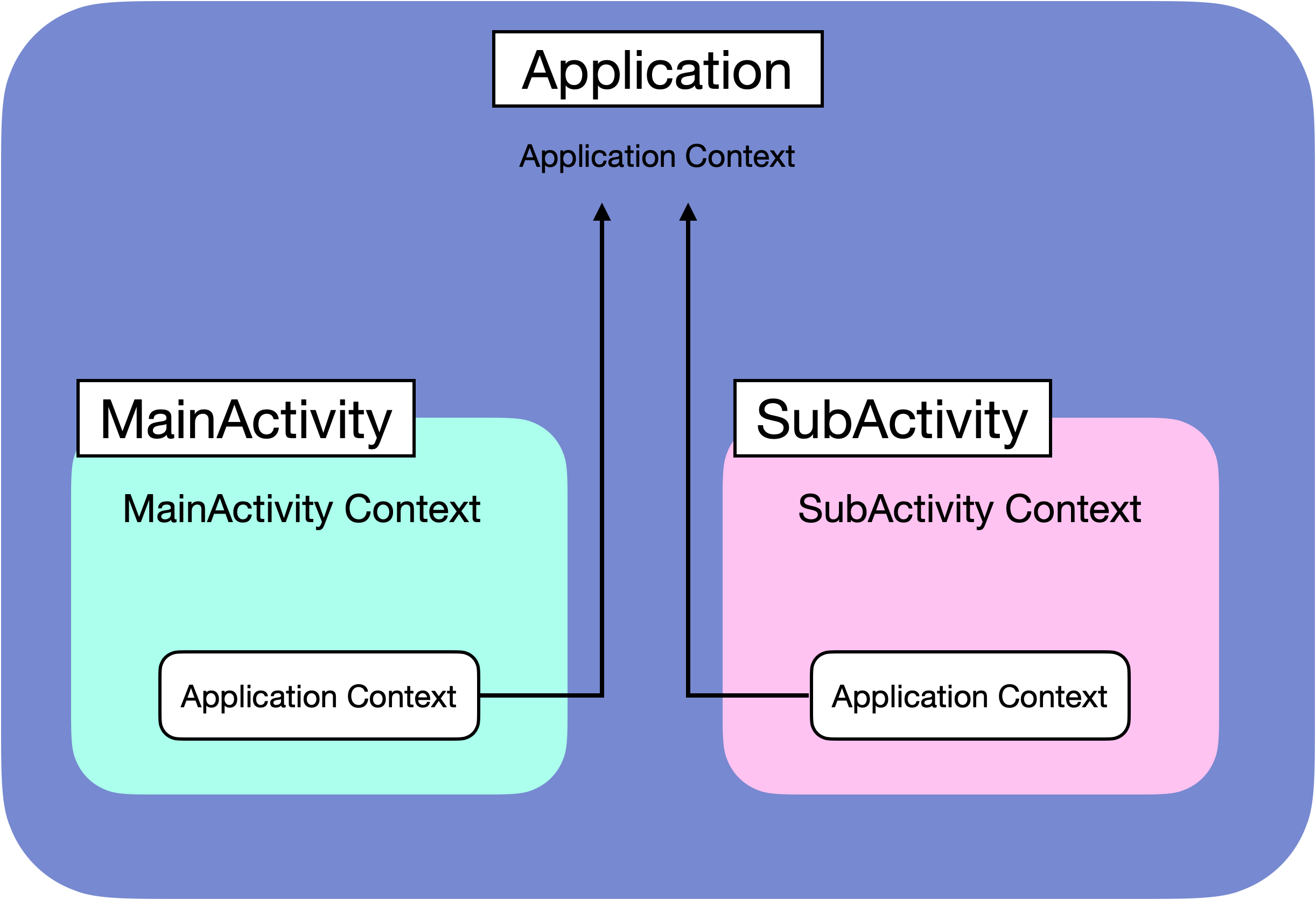 Application Context와 Activity Context 간 계층은 다음과 같습니다.